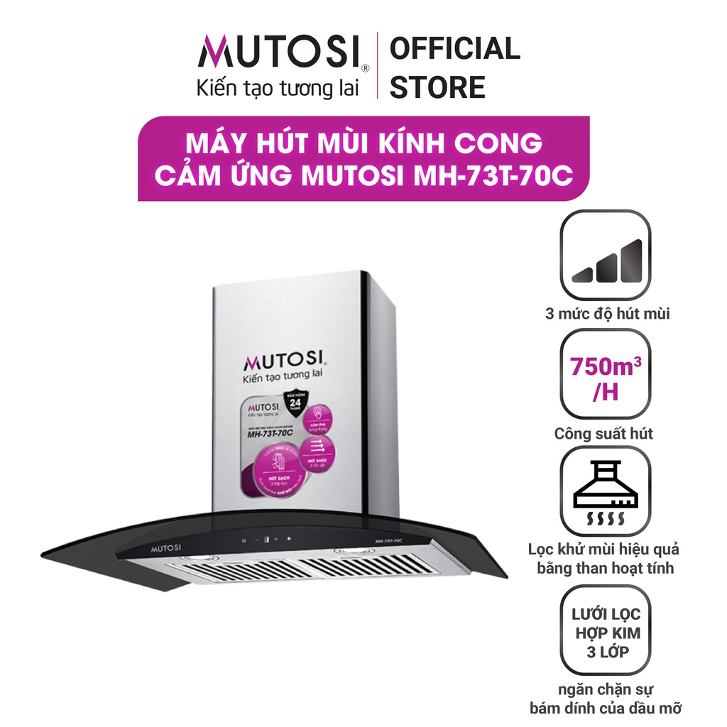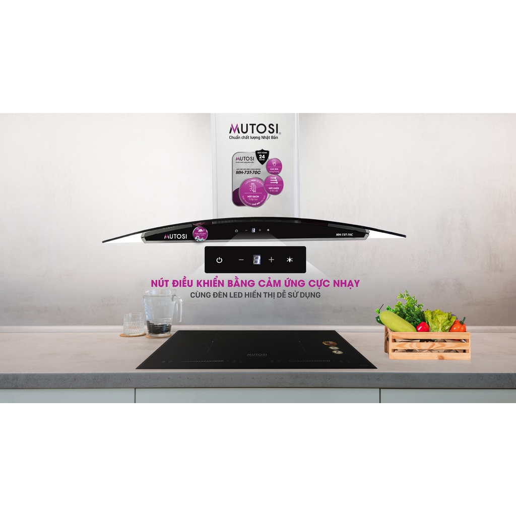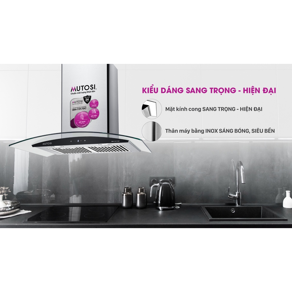 Máy hút mùi kính cong cảm ứng Mutosi MH-73T-70C khử mùi hiệu quả- 3 mức độ hút mùi