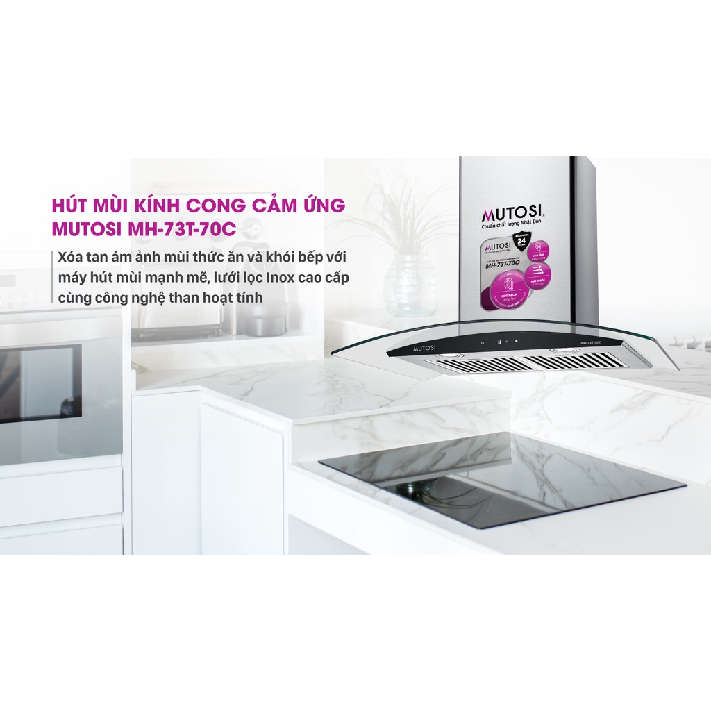 Giới thiệu Hút mùi kính cong cảm ứng Mutosi MH-73T-70c