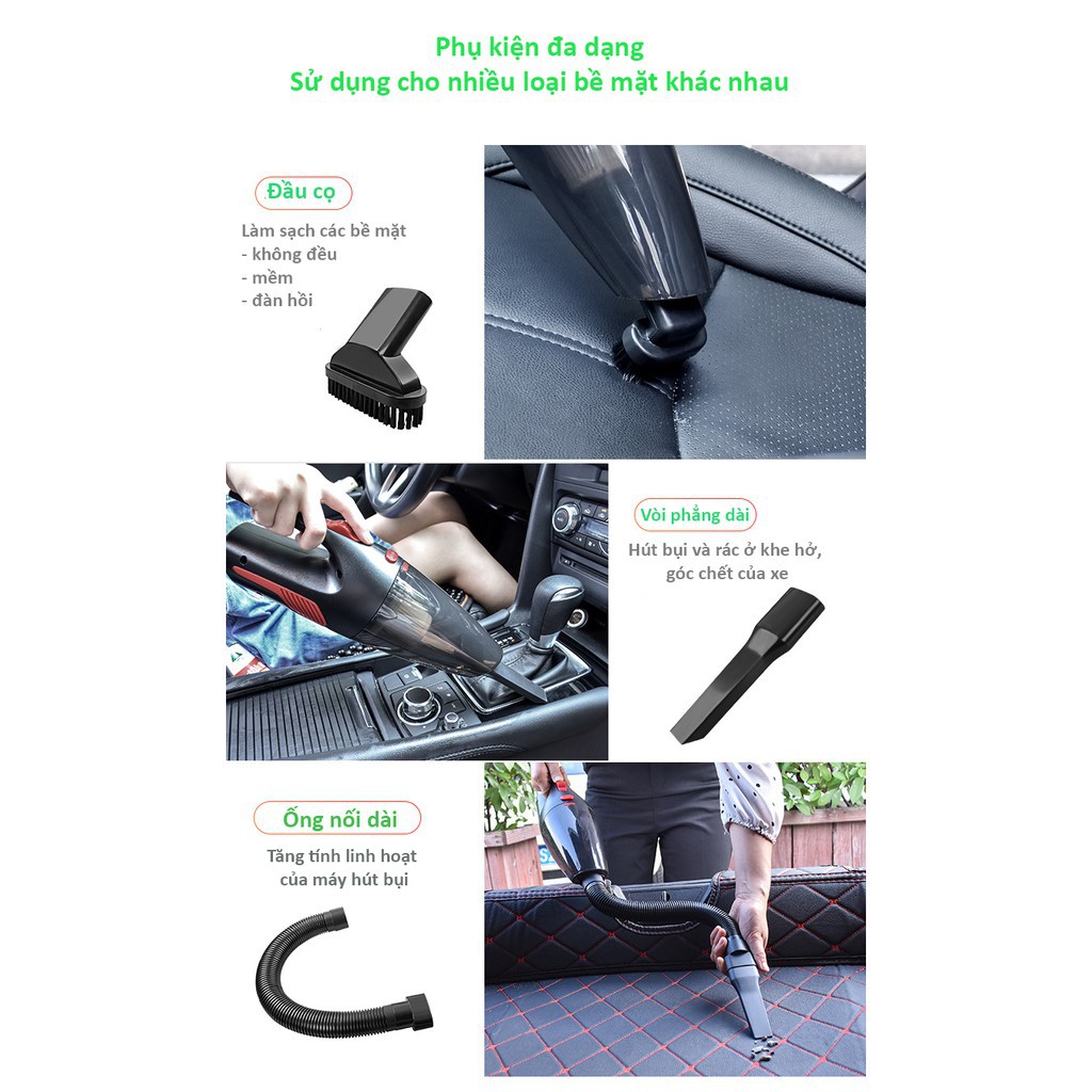- Hút mọi ngóc ngách trên xế yêu và trong nhà của bạn một cách dễ dàng và thuận tiện.