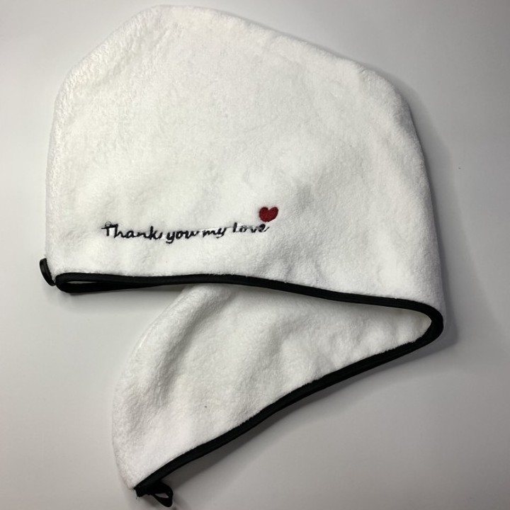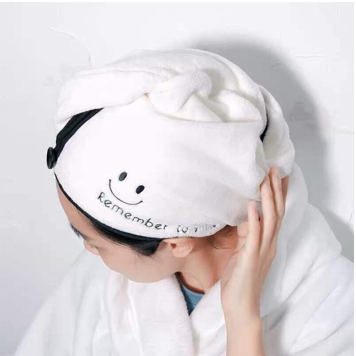 Khăn quấn khô tócChất liệu: cotton, hút thấm tốt, lông mềm mại, không bị xù hoặc rụng.