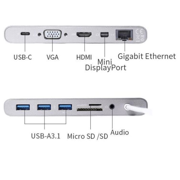 Bao gồm 11 cổng kết nối: VGA , HDMI 4K, USB-C, SD, microSD, 3 x USB 3.1, cổng mạng Gigabit Ethernet, cổng Thunderbolt và cổng Tai nghe 3.5