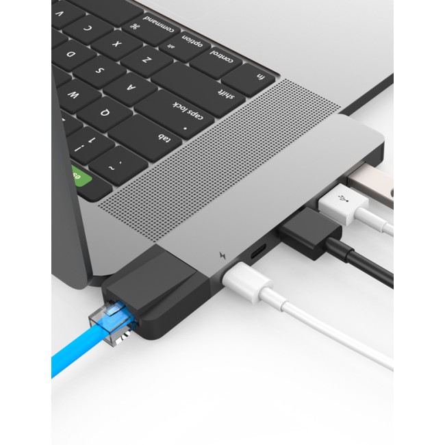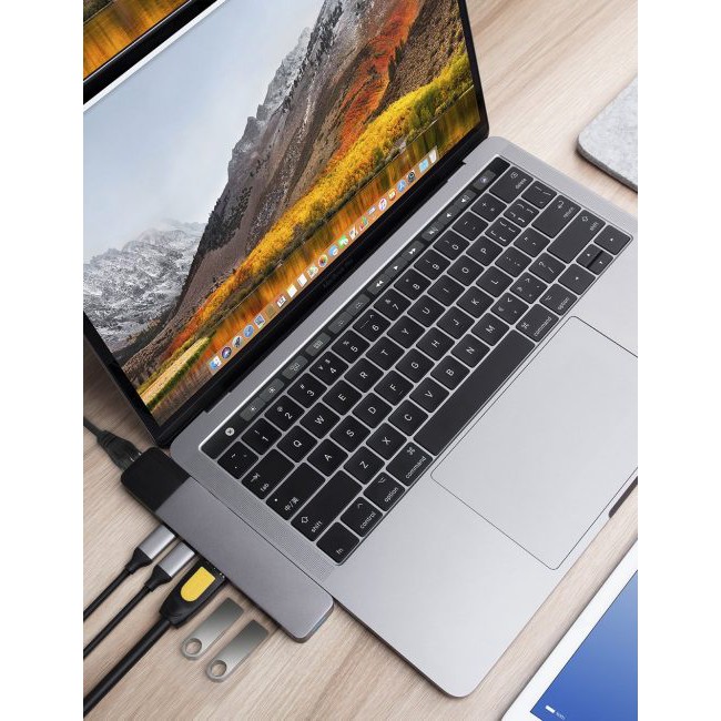 Hyperdrive NET 6 in 1 hỗ trợ xuất từ cổng thunderbolt 3 của Macbook Pro ra 6 cổng: