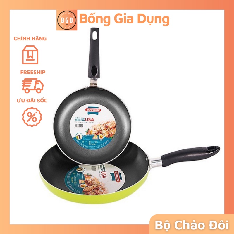 Nhà cửa & Đời sống > Dụng cụ nhà bếp > Chảo || Bộ Đôi Chảo Siêu Chống Dính SUNHOUSE Kích Thước 18 và 24 cmCòn hàng
