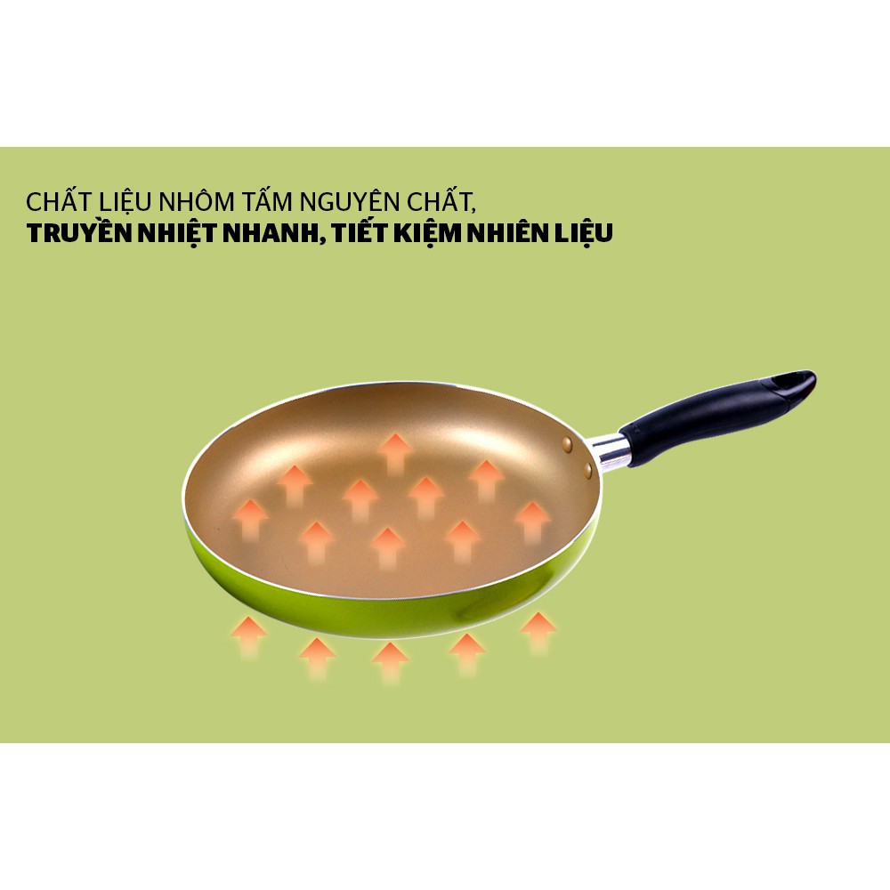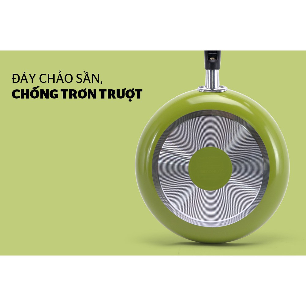 Bề mặt chảo có màu xanh tươi tắn được sơn tĩnh điện cao cấp, chịu nhiệt tốt, mang đến bộ bền cao và khả năng chống xước hiệu quả giúp chảo nhìn như mới sau thời gian dài sử dụng.