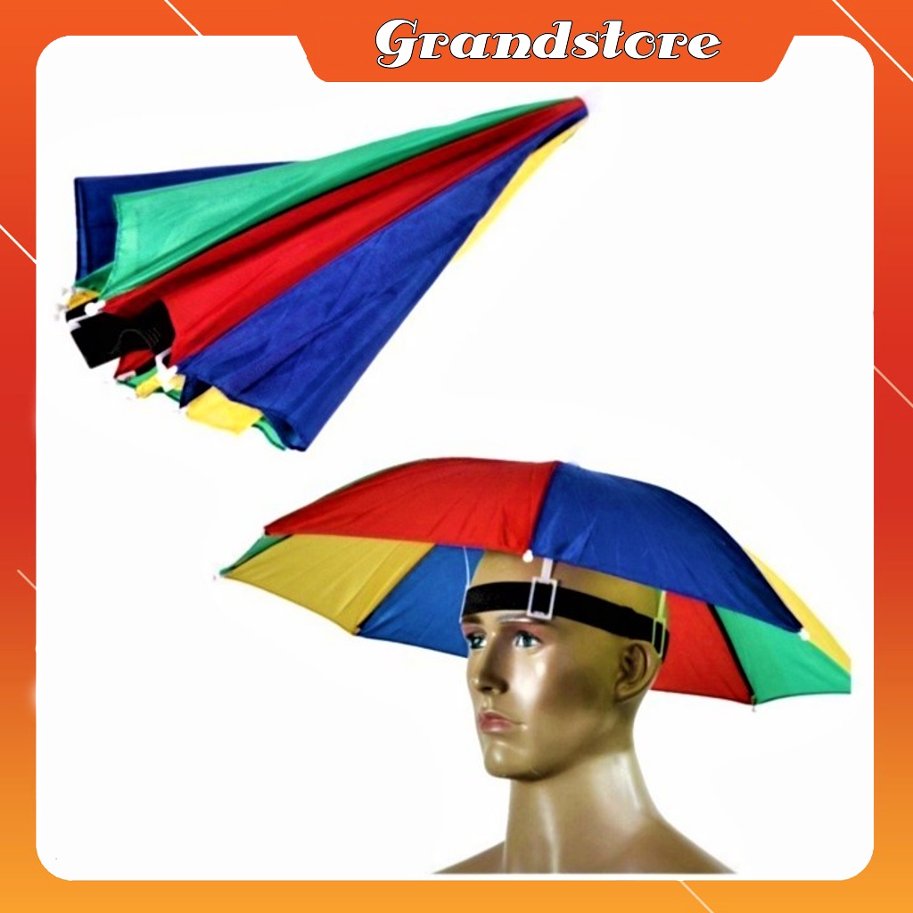Thể Thao & Dã Ngoại > Phụ Kiện Thể Thao & Dã Ngoại > Ô/Dù || Dù đội đầu che nắng mưa nhiều màu gấp gọn tiện lợi khi đi câu cá, du lịch, đi biển, đi phượt, mũ ô dù đeo đầu xếp gọnCòn hàng
