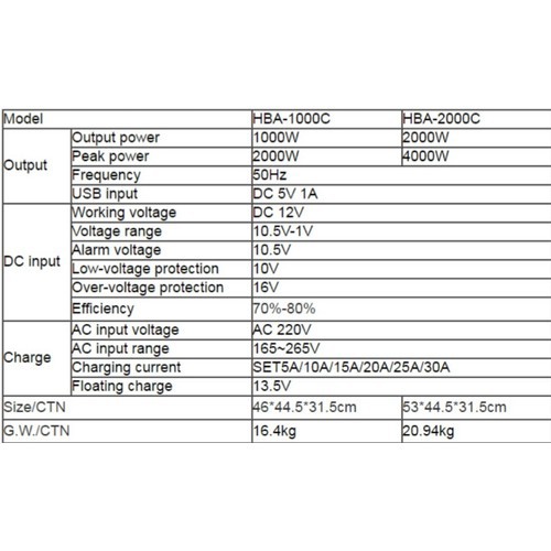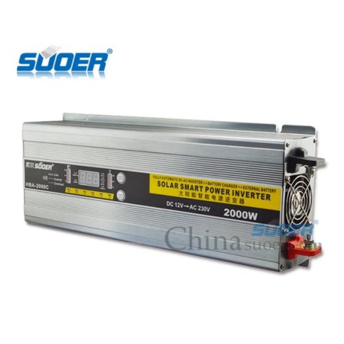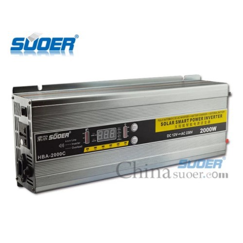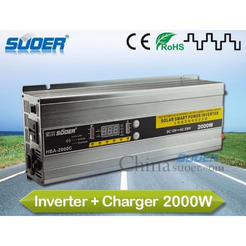 Bộ đổi điện 2000W 12V sang 220V tích hợp sạc AC 30AMáy đổi điện HBA-2000C là dòng đổi điện cao cấp liên tục 2000w dùng để chuyển dòng điện 12V thành 220V dùng cho các thiết bị gia đình. Có sạc ắc quy điện tử tự động ngắt khi sạc bình ắc quy đầy, chức năng UPS, Sin mô phỏng.