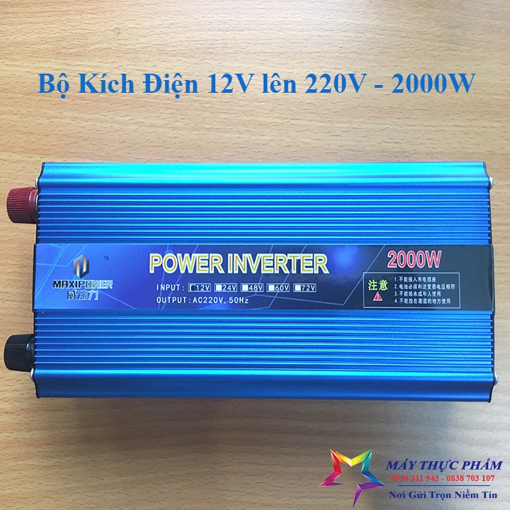 - Máy Thực Phẩm xin giới thiệu sản phẩm Bộ kích điện 12V - 220V - 2000W MAXIPOWER chức năng dùng đổi nguồn từ bình ắc quy 12V sang 220V sử dụng cho các thiết bị điện trong gia đình.