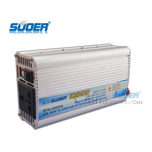Bộ đổi điện chống ngược cực 1000W 12V sang 220V SFA-1000AChuyển đổi điện từ 12V sang 220V sử dụng cho chiếu sáng đèn, quạt, tivi, nồi cơm điện, nguồn dự phòng, công nghiệp, điện gia đình....