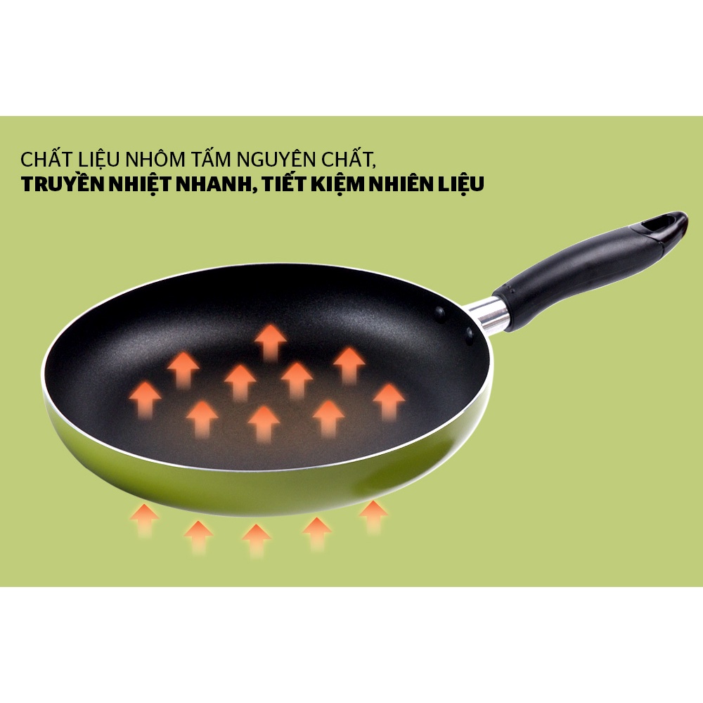 Bề mặt chảo có màu xanh tươi tắn được sơn tĩnh điện cao cấp, chịu nhiệt tốt, mang đến bộ bền cao và khả năng chống xước hiệu quả giúp chảo nhìn như mới sau thời gian dài sử dụng.