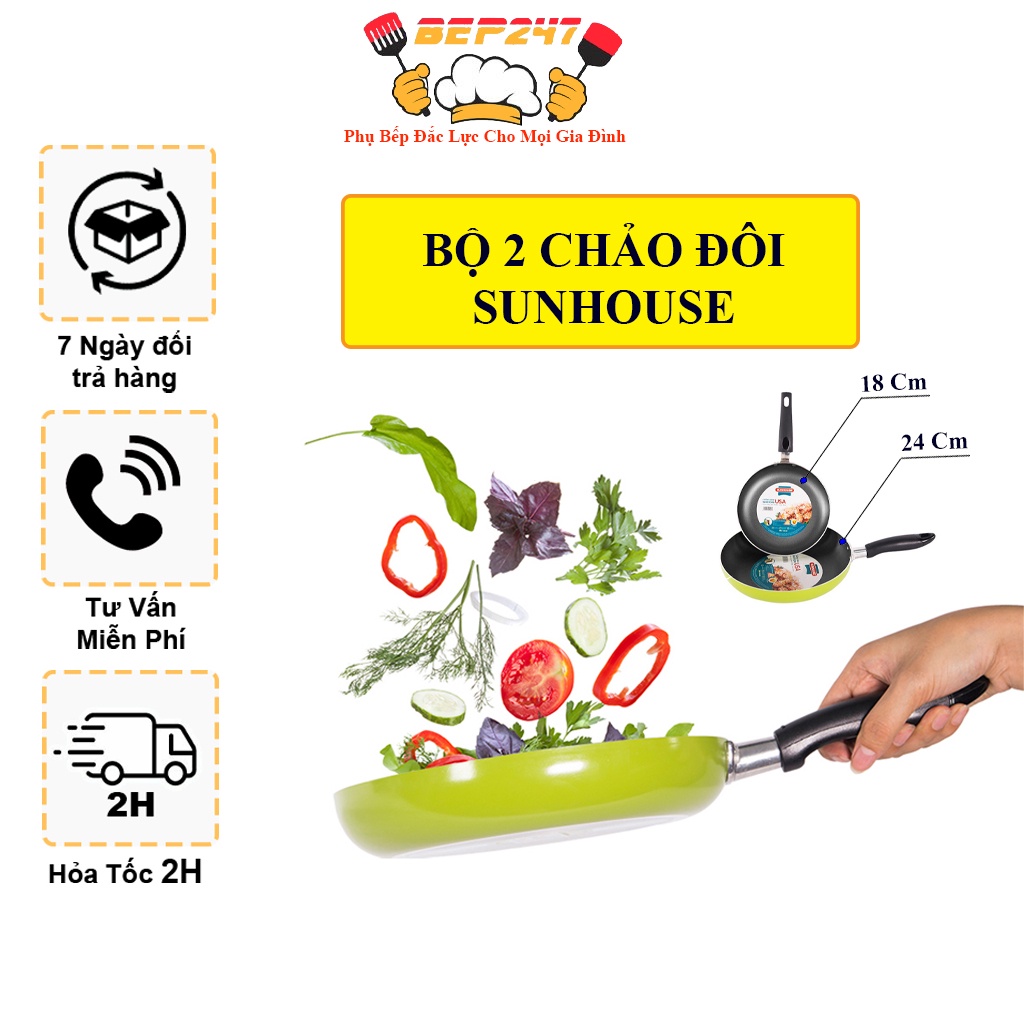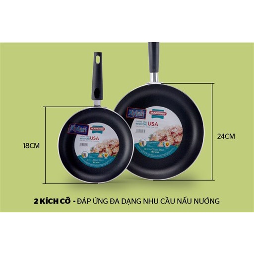 Bộ Đôi Hoàn Hảo - Chảo Siêu Chống Dính SUNHOUSE SHS2418 (màu sâm panh)