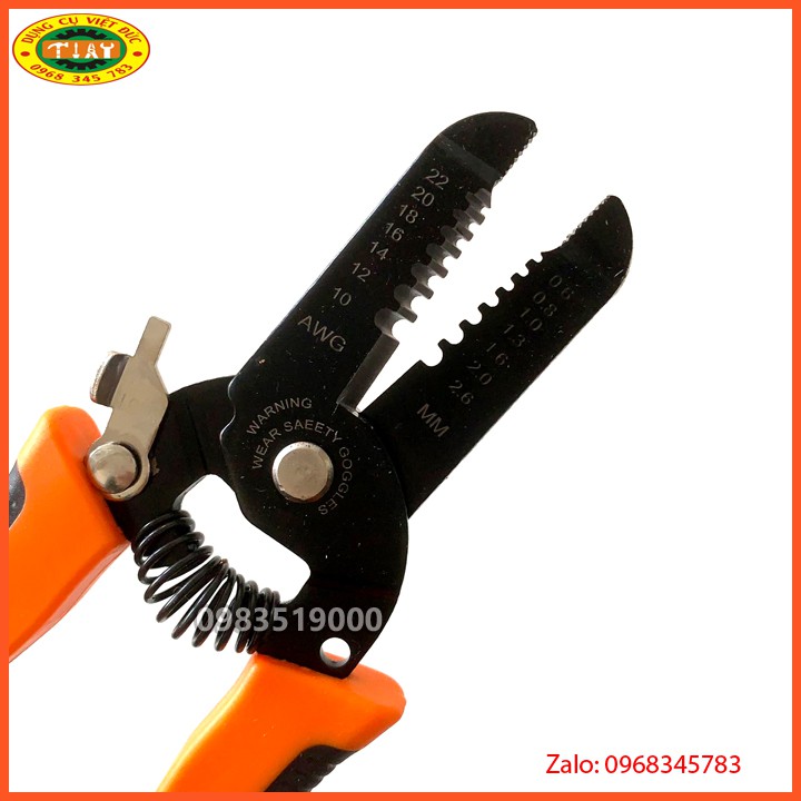 Kìm có khả năng tuốt vỏ nhiều loại dây có kích thước khác nhau bao gồm dây cỡ AWG: 8, 10, 12, 14