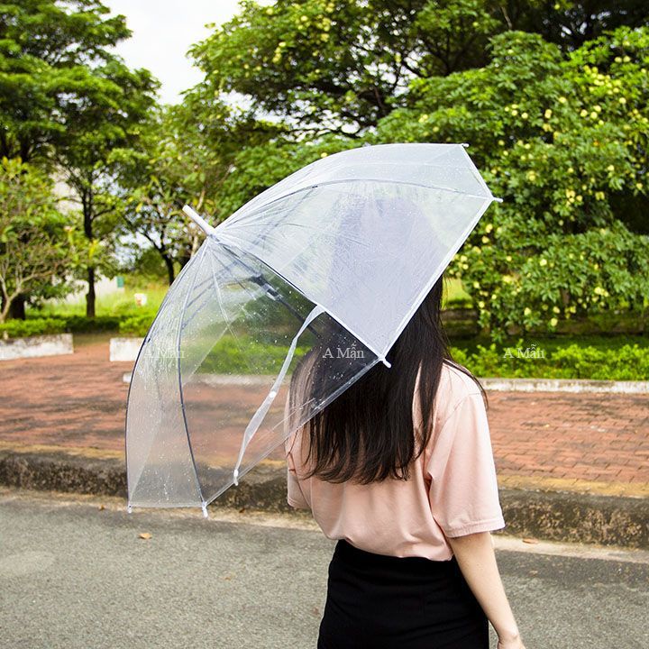 Giới thiệu Ô Dù Đi Mưa Trắng Trong Suốt Đi Du Lịch Che Nắng,Che Mưa Chụp Ảnh Tự Sướng