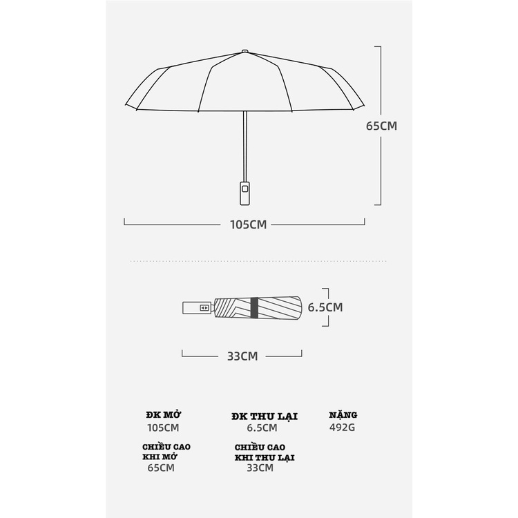 LƯU Ý: Sau khi đi mưa nên phơi khô ô dù rồi mới xếp gọn để tăng độ bền của ô !