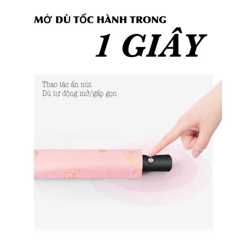 Ô Dù Đi Nắng Che Mưa Tự Động Hoạ Tiết Nhiều Màu Chống Tia Uv Cao Cấp Sang Trọng
