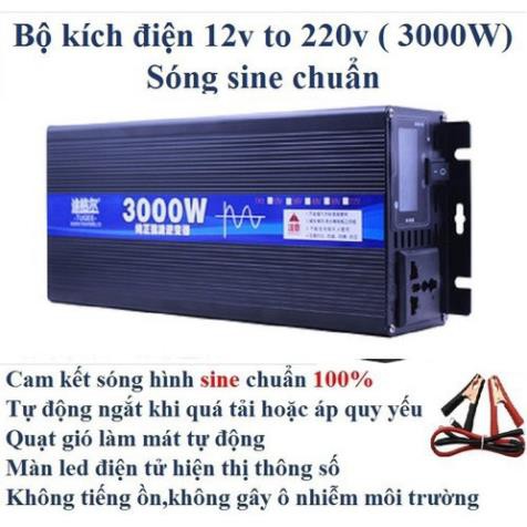 Bộ đổi nguồn 12v 220v công suất 3000w - Tặng kèm đôi kẹpShop xin giới thiệu sản phẩm Bộ kích sin chuẩn 12V sang 220V chức năng dùng đổi nguồn từ bình ắc quy 12V sang 220V sử dụng cho các thiết bị điện trong gia đình. Bộ đổi nguồn sine chuẩn giúp nâng cao tuổi thọ của các thiết bị điện trong quá trình sử dụng.