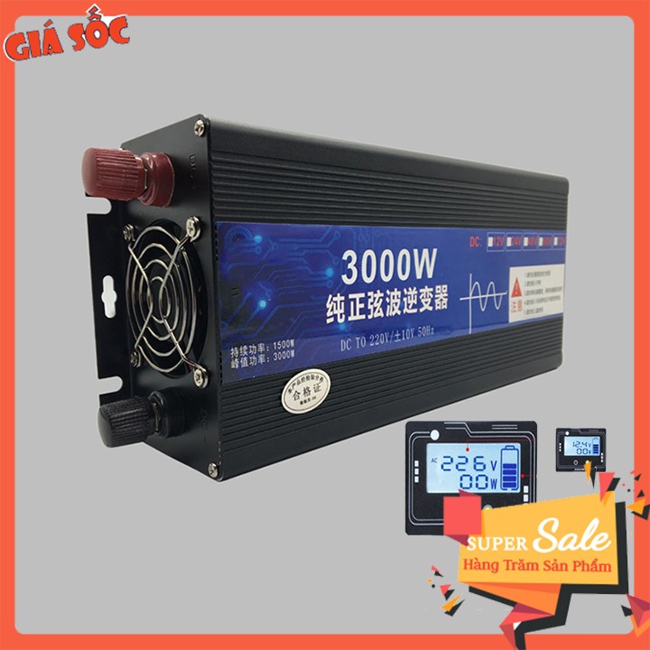 Bộ Đổi Nguồn 12V Lên 220V 3000W Sin Chuẩn Hiển Thị Công Suất