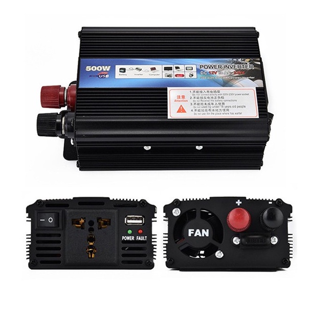 - Với bộ kích điện công suất 500W thì đáp ứng được các nhu cầu sài điện khác nhau: bóng đèn, quạt, tivi led...khi sử dụng các sản phẩm, bạn cần xem công suất của thiết bị đó hoặc tổng công suất của các thiết bị có vượt quá công suất của bộ đổi điện hay không?