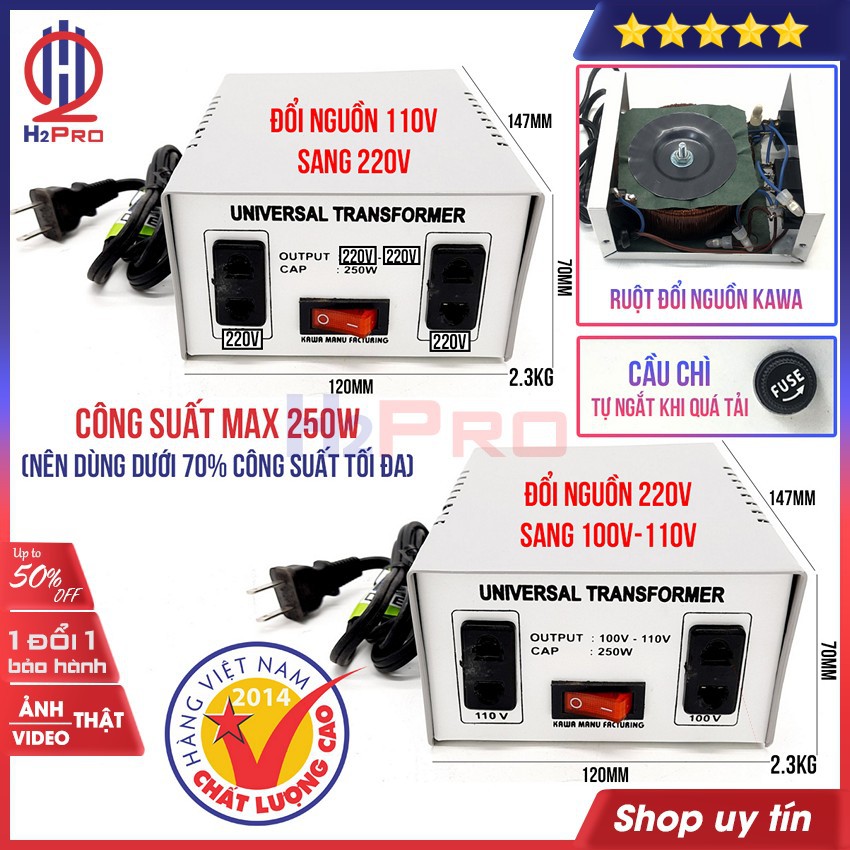 Nhà cửa & Đời sống > Dụng cụ & Thiết bị tiện ích > Dụng cụ > Khác || Bộ đổi nguồn 220V sang 110V-100V hoặc đổi nguồn 110V sang 220V KAWA H2Pro 250W cao cấp, chất lượng cao-an toànCòn hàng