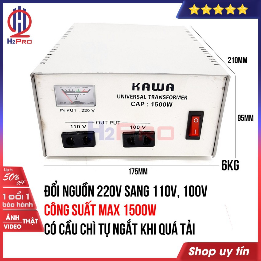 Thiết Bị Điện Gia Dụng > Khác || Bộ đổi nguồn 220V sang 110V-100V hoặc đổi nguồn 110V sang 220V KAWA H2Pro 1500W cao cấp, chất lượng cao-an toànCòn hàng
