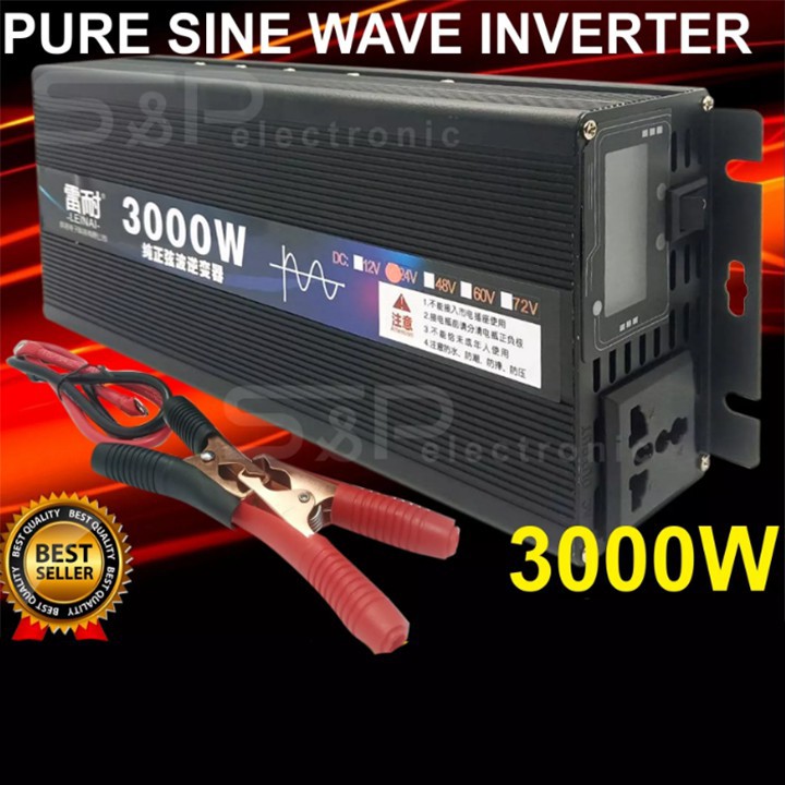 BỘ ĐỔI NGUỒN INVERTER 12V - 220V - 3000W SIN CHUẨN - CÔNG SUẤT THỰC 1500W - KẸP CÁ SẤU