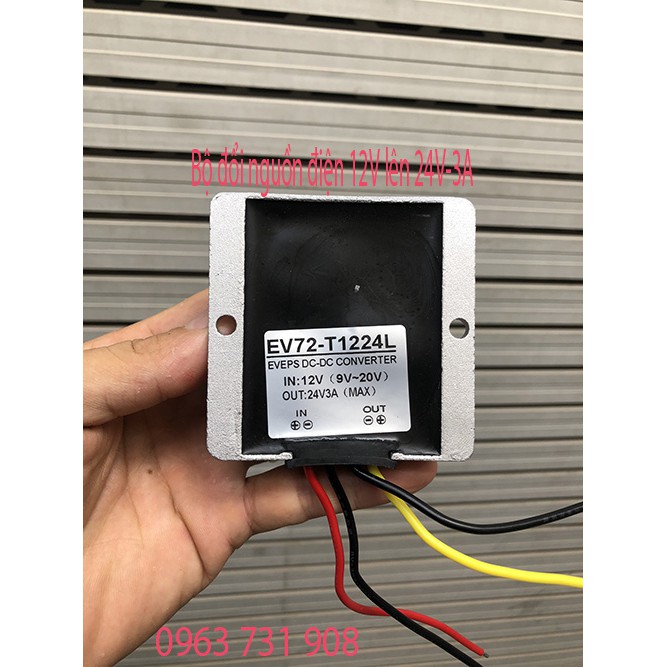 Các bạn đang cần tìm bộ đổi nguồn điện DC 12V lên 24V-3A mà không biết mua ở đâu yên tâm chất lượng , giá thành hợp lý cũng như chế độ bảo hành dài hay ngắnBộ chuyển đổi DC 12v sang 24v là bộ chuyển đổi dòng điện DC 12v lên dòng điện DC 24v, chuyên dùng trên xe oto, camera và 1 số thiết bị cần acquy 12v kích lên 24v