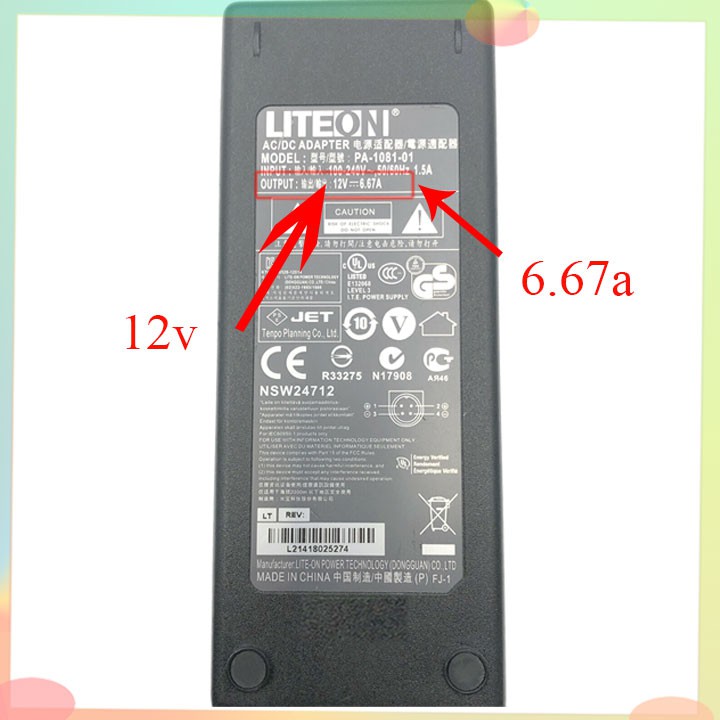 Thông số kỹ thuật bộ nguồn màn hình Asus PW201Hãng sản xuất: Liteon