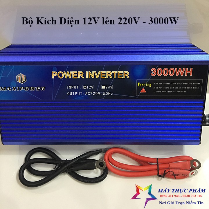 - Máy Thực Phẩm xin giới thiệu sản phẩm Bộ kích điện 24V - 220V - 3000W MAXIPOWER chức năng dùng đổi nguồn từ bình ắc quy 24V sang 220V sử dụng cho các thiết bị điện trong gia đình.
