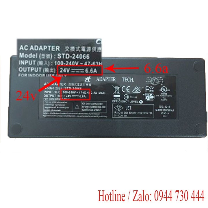 - Điện áp đầu ra ( output ): 24v 6.6a