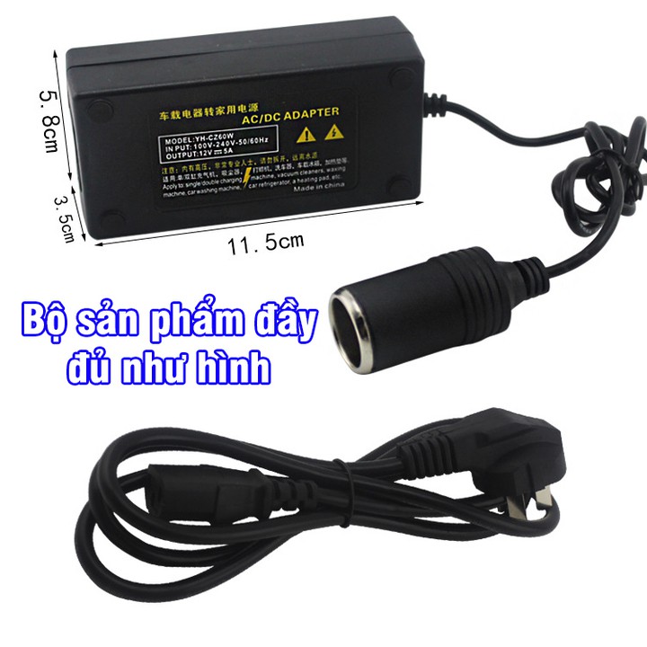 - Do đó Gian hàng chúng tôi đã tìm hiểu và chọn được nhà sản xuất thiết kế ra bộ chuyển đổi từ đầu cắm nguồn 220V Ra đầu cắm của nguồn ô tô 12V/60W/5A.