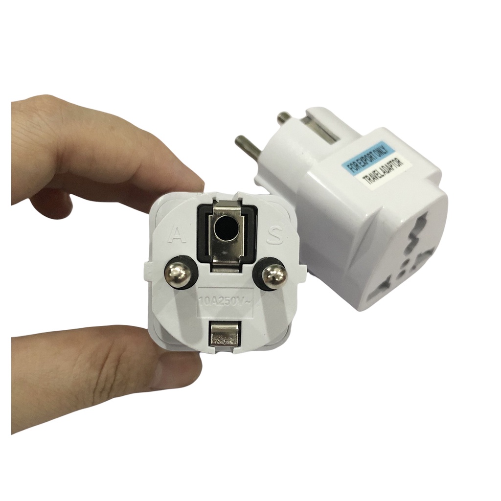 Ổ Chuyển Đổi Phích Cắm Từ 3 Chân Sang 2 Chân, Chấu chuyển đổi chân tròn và chân dẹt màu trắng