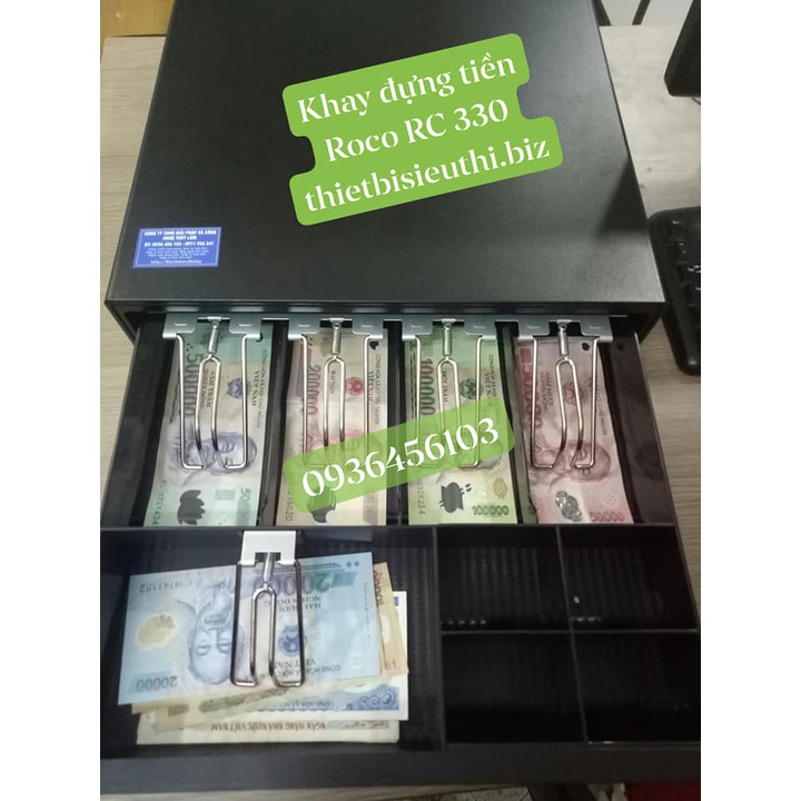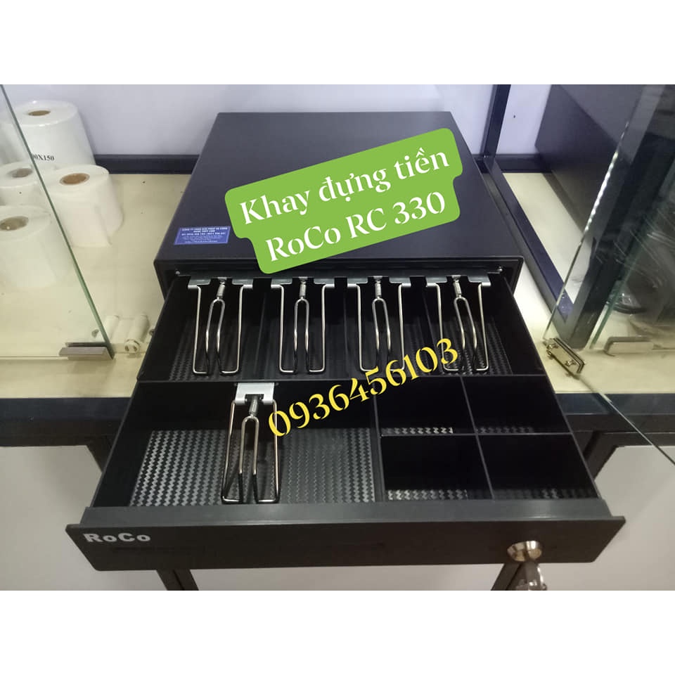 Ngăn kéo đựng tiền RoCo RC 330 (Khay đựng tiền thu ngân Roco RC 330): Được sử dụng để đựng tiền tại các quầy thanh toán ở siêu thị, minimart, tạp hóa, shop thời trang...các cửa hàng bán lẻ có diện tích quầy thanh toán nhỏ, có tích hợp với máy in hóa đơn. Tự động bật ngăn kéo đựng tiền khi in xong hóa đơn mà không cần chìa khóa mở.