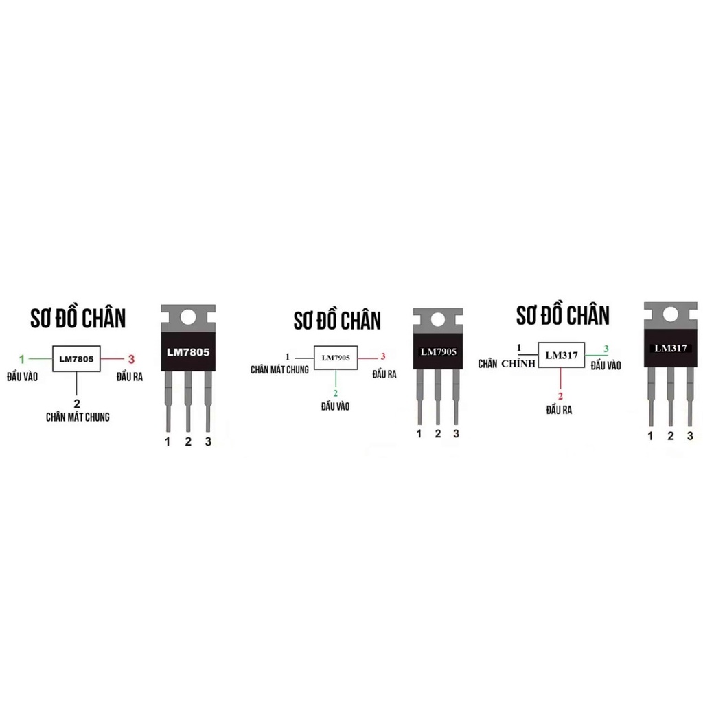 Ic ổn áp 5v 12v 15v dòng ra ổn khoảng 700ma dùng tốt cho dan pre k . Nếu cần dùng công suất lớn các bạn nên lắp thêm tản nhiệt .Loại 78xx ổn áp nguồn + 79xx ổn áp nguồn - các bạn trọn kỹ phần danh mục