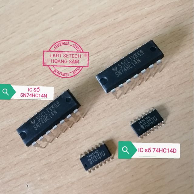 IC số 74HC14 chân Cắm DIP14, chân dán SOIC14:* SN74HC14N: