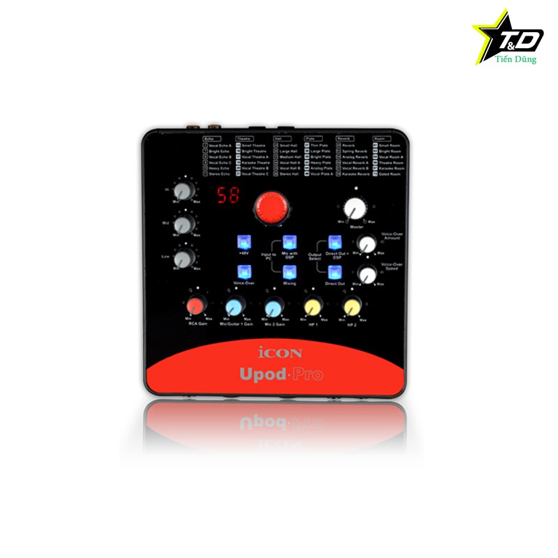 - Sound card USB ICON Upod Pro tối ưu âm thanh chất lượng cao 16bit/48kHz, cung cấp 72 hiệu ứng âm thanh kỹ thuật số, phục vụ tốt cho nhu cầu thu âm online, hát karaoke trên máy tính hay hát.