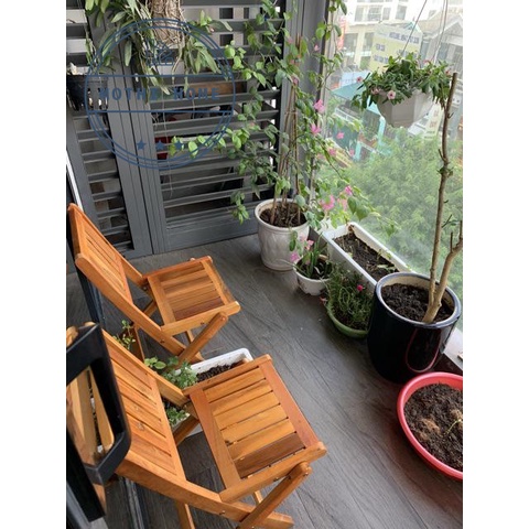 Bộ bàn ghế ban công chung cư chất liệu gỗ tràm siêu chịu nước.