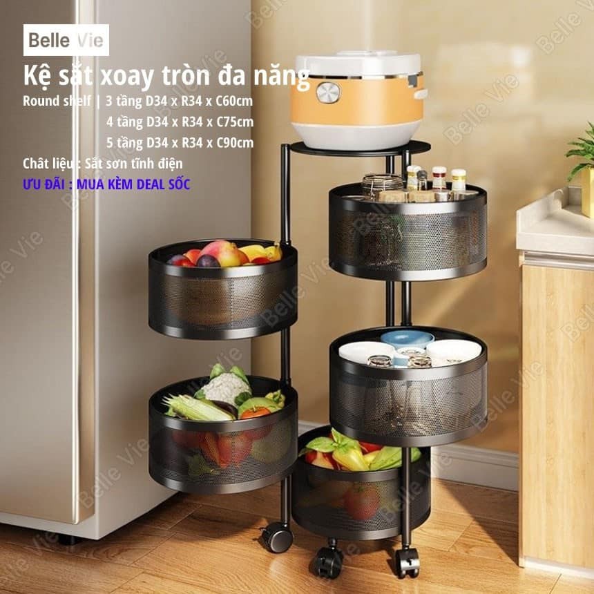Nhà cửa & Đời sống > Nội thất > Kệ & Giá || 𝐌IỄN PHÍ SHIP Kệ Đa Năng Kệ Sắt Tròn Xoay 360* - Chất Liệu Thép Không Gỉ Có Bánh XeCòn hàng