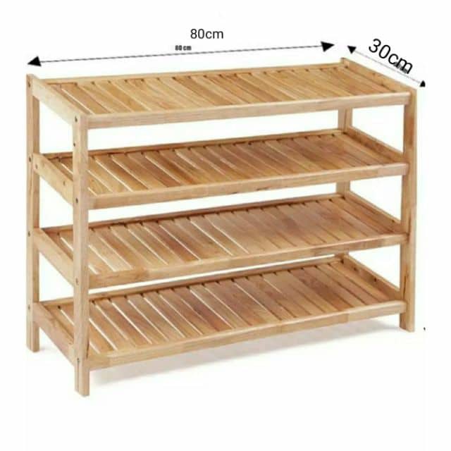 Kệ Để Giầy Dép Bằng Gỗ 4 Tầng Rộng 80cmKệ để giày dép 4 tầng rộng 80 cm được làm từ 100% gỗ cao su tự nhiên được tẩm sấy kỹ lưỡng chống mối mọt, ẩm mốc giúp sản phẩm có độ bền cao. Được phủ một lớp sơn PU bóng mờ giúp nổi bật vân gỗ tự nhiên, kệ để giày có khả năng chống thấm, hạn chế trầy xước và an toàn cho người dùng.