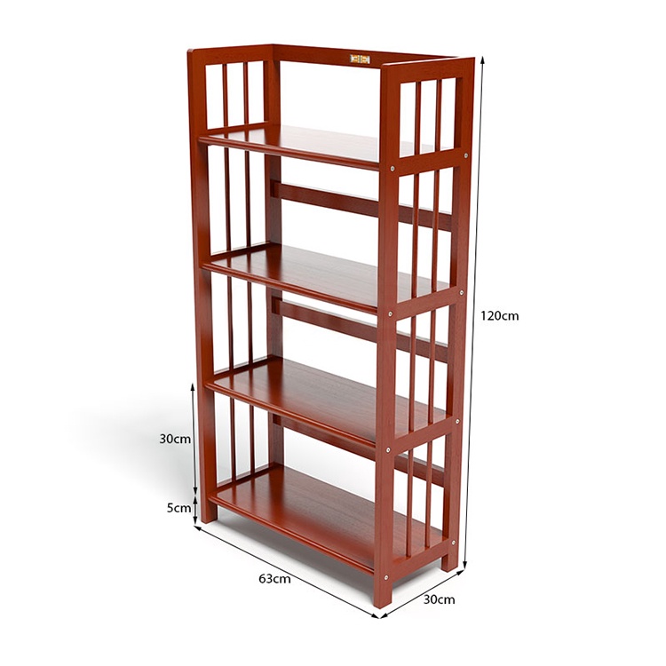 Kệ sách 4 tầng ngang 60cm, cao 120cm, sâu 28cm được làm bằng gỗ cao su, được xử lý chống mối mọt, chống cong vênh, dễ tháo lắp