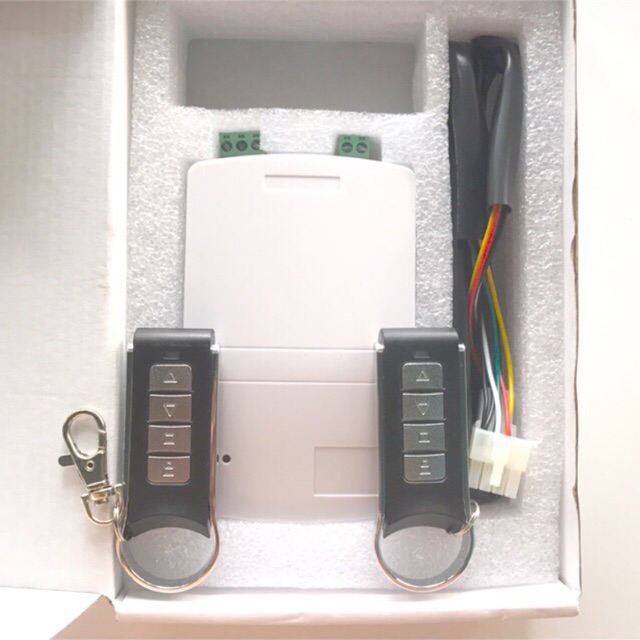 👍bộ sản phẩm gồm:1 hộp điều khiển,2 remote cửa cuốn,1 giấc cắm, cài ứng dụng safemate để sử dụng bằng điện thoại thích hợp với android và ios