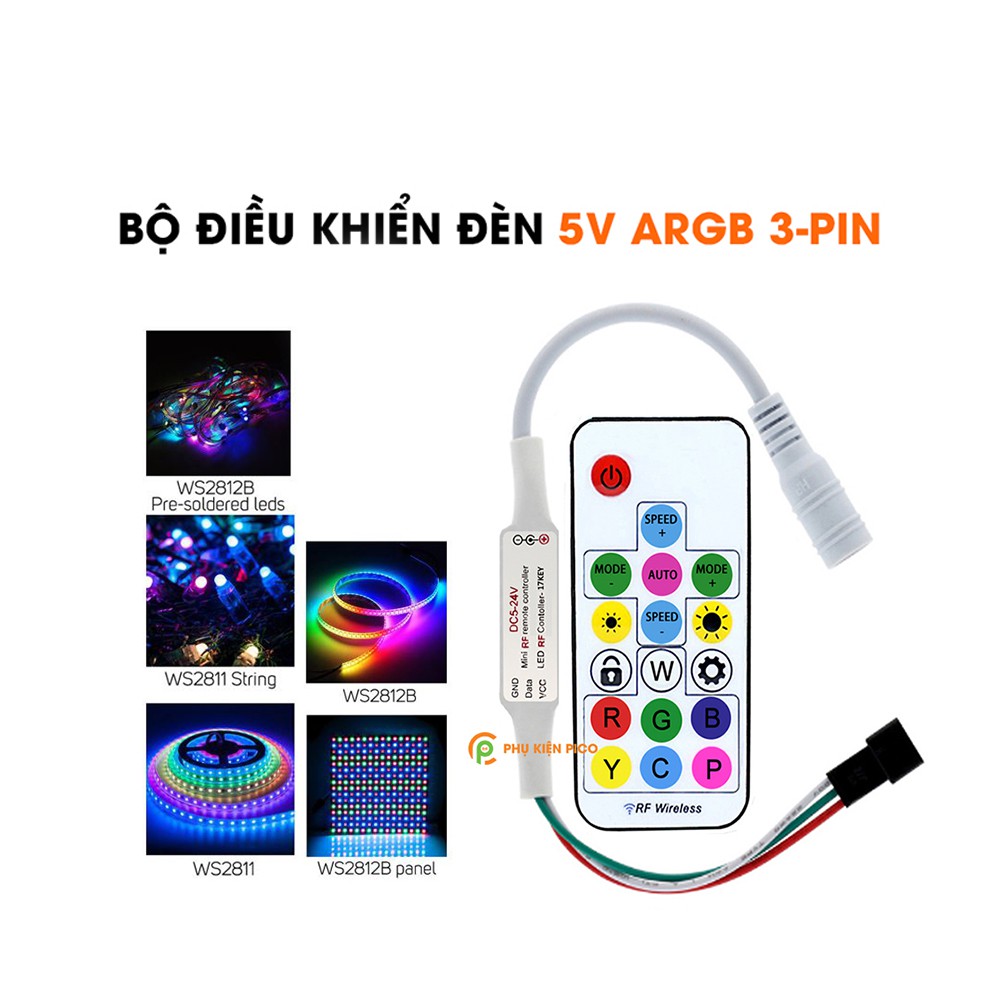 - RGB Led Controller là bộ điều khiển đèn 5v 3-pin Adressable RGB. Bộ Remote được sử dụng nhiều trong các hộ gia đình sử dụng dây led trang trí trong phòng, và điều chỉnh màu cho thiết bị máy tính.