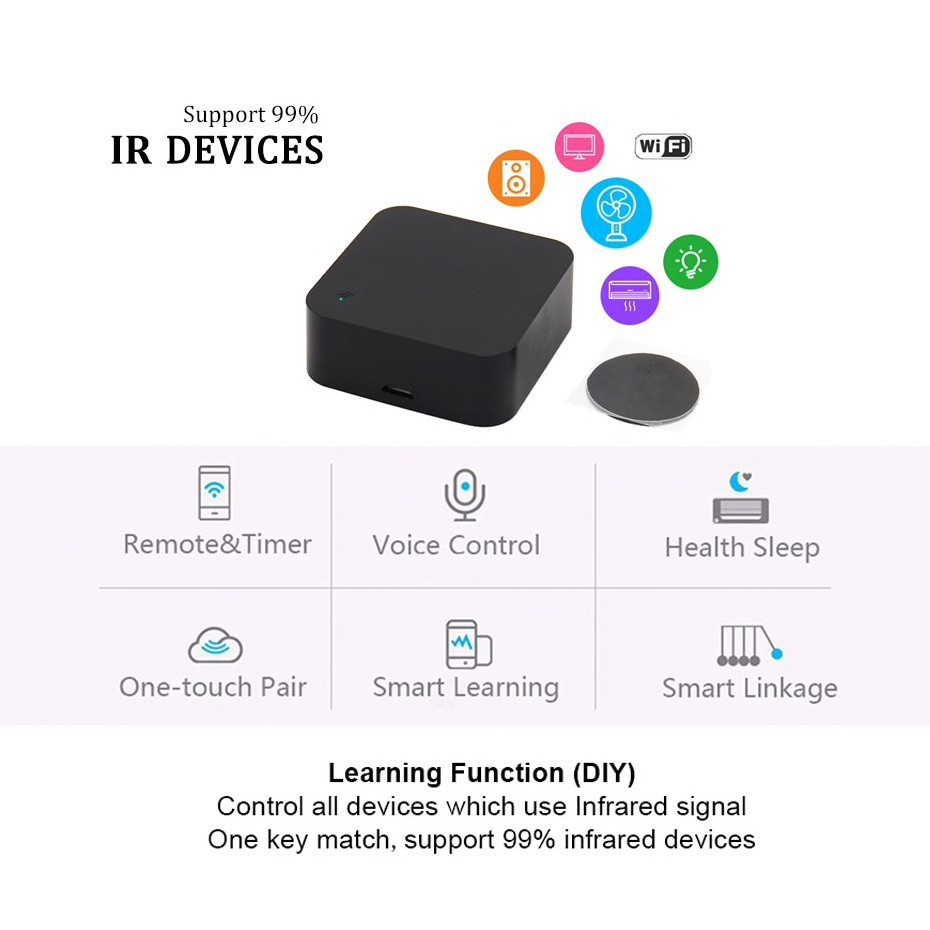 Thiết bị điểu khiển hồng ngoại Tuya hỗ trợ rất nhiều thiết bị nên có thể dùng để thay thế tất cả các điều khiển trong nhà của bạn như: TV, đầu kỹ thuật số, điều hòa, quạt.