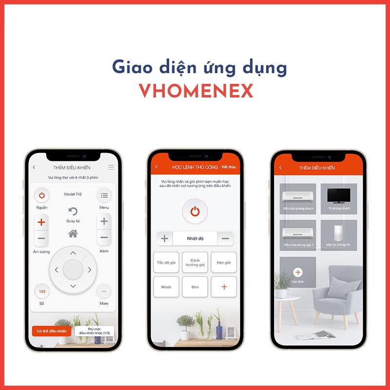 - Thay thế toàn bộ remote trong nhà chỉ bằng một ứng dụng Vhomnex trên điện thoại di động.- Điều khiển từ xa, hẹn giờ bật/tắt toàn bộ, theo nhóm hoặc từng thiết bị điều khiển hồng ngoại như Tivi, điều hòa, quạt điện, máy lọc không khí… qua ứng dụng di động.
