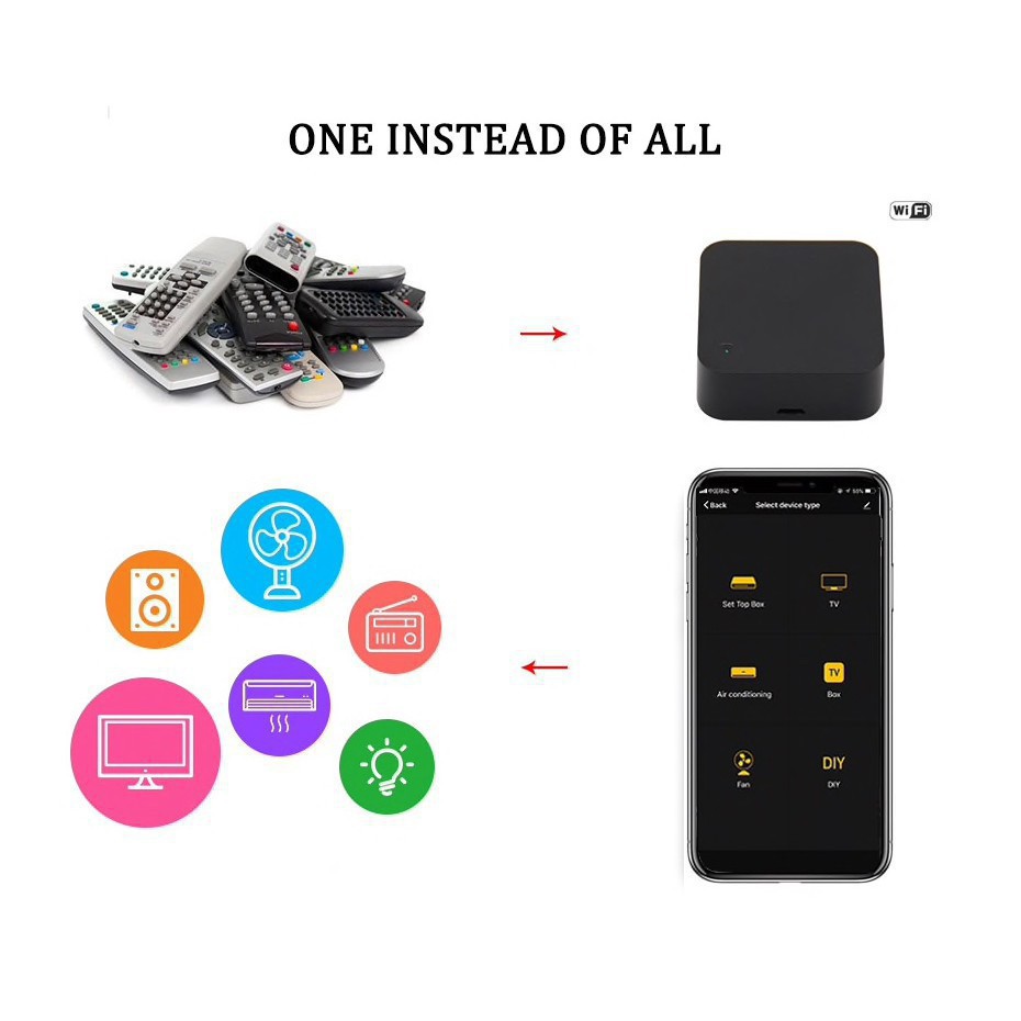 ・Bộ Điều Khiển Trung Tâm Hồng Ngoại Tuya S06 PRO có thể thay thế hoàn toàn các remote điều khiển hồng ngoại trong nhà của bạn. Qua đó có thể thực hiện điều khiển các thiết bị sử dụng remote trong nhà như: máy lạnh, tivi... thông qua giao diện điện thoại hoặc sử dụng giọng nói khiến ngôi nhà trở nên thông minh hơn.