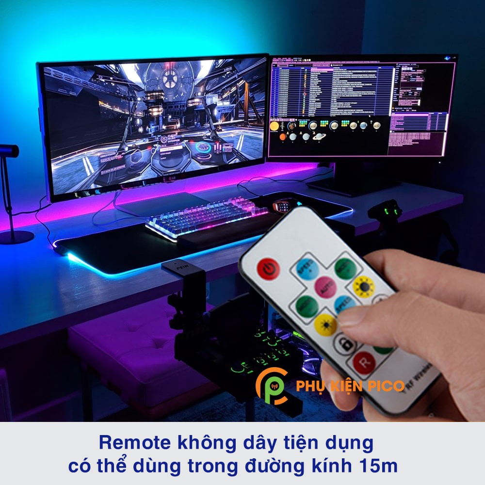 - Bộ Remote được sử dụng nhiều trong các hộ gia đình sử dụng dây led trang trí trong phòng và điều chỉnh màu cho thiết bị máy tính.