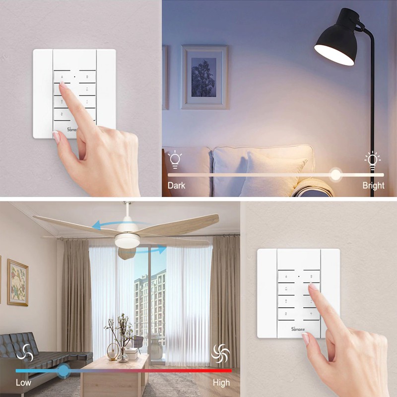 Giới thiệu Tay điều khiển RF RM433 Sonoff ,Đế gắn tường, Tay điều khiển RF433 8 nút thiết kế sang trọng, tương thích RF 433