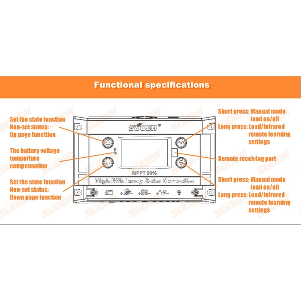 Bộ điều khiển sạc năng lượng mặt trời MPPT 30A MPPT-ST-H1230Sử dụng bộ điều khiển sạc MPPT bạn sẽ thu được hiệu suất lớn hơn từ tấm pin năng lượng mặt trời Nguyên tắc của nó là dùng các mạch vi-xử-lý để theo dõi điểm làm việc có công suất cực đại của PV panel, ép PV panel luôn làm việc ở điểm này để lấy tối đa năng lượng của PV panel (điểm MPP của PV panel cũng luôn thay đổi do ánh nắng thay đổi). Sau đó đưa năng lượng này sang 1 mạch charge bình, vì mạch này độc lập nên có thể thiết kế có nhiều chế độ charge, tối ưu hóa việc nạp bình về thời gian nạp và cách nạp để kéo dài tuổi thọ bình. Một ưu điểm khác là vào ban đêm, khi điện áp của PV panel bằng không, năng lượng được dự trữ ở acquy có điện thế lớn có khuynh hướng chạy ngược về panel thì nó cách ly ra chúng ra hoàn toàn, vừa bảo vệ PV panel vừa bảo vệ năng lượng dự trữ ở bình. Điều này thì bộ PWM khó có thể thực hiện hoàn hảo được.
