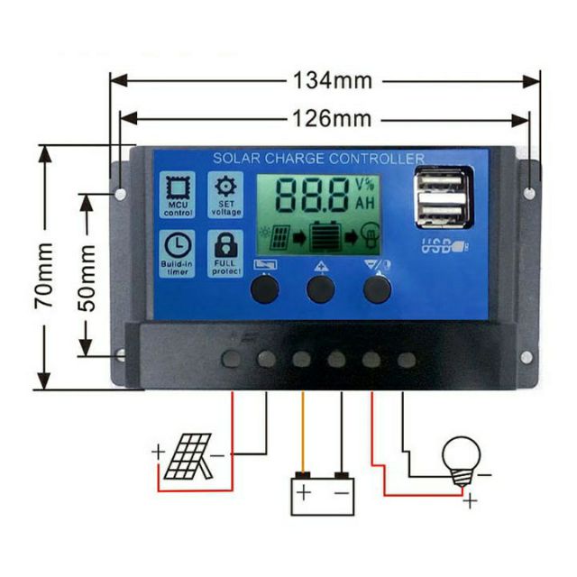 Bộ điều khiển sạc pin năng lượng mặt trời 30A 12V 24VLưu ý: hãy đọc hướng dẫn an toàn trước khi sử dụng và kết nối ắc quy trước khi kết nối với các mô-đun năng lượng mặt trời.