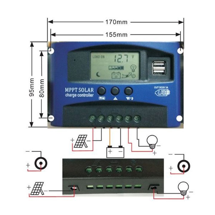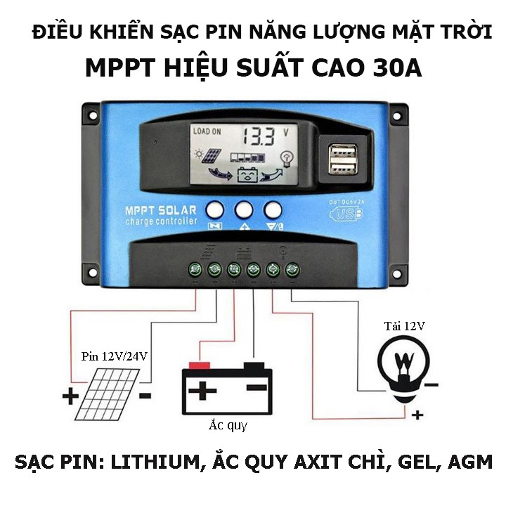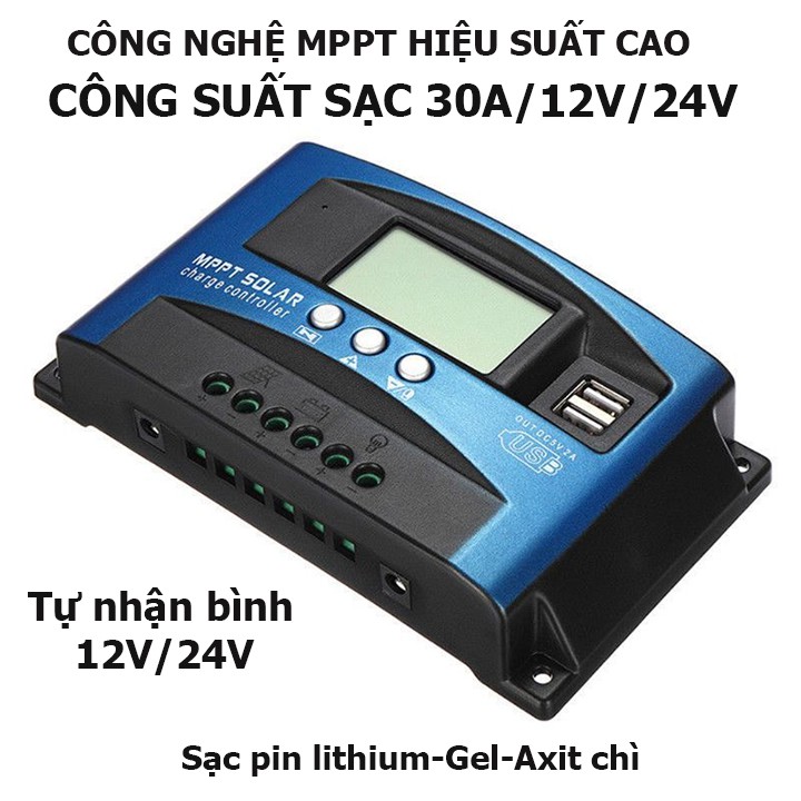 Bộ điều khiển sạc pin năng lượng mặt trời 12v 24V MPPT công suất 30A, sạc pin lithium
