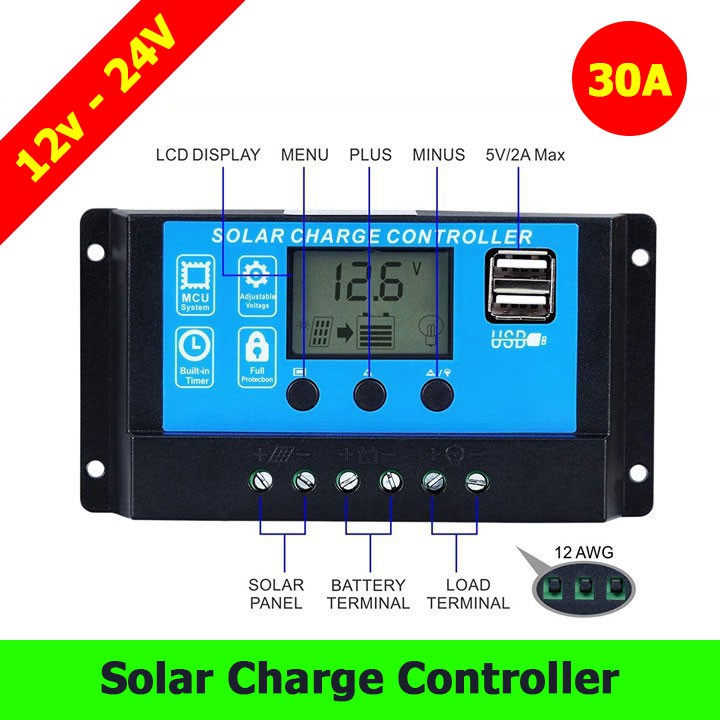Thiết Bị Điện Gia Dụng > Pin || Bộ điều khiển sạc pin năng lượng mặt trời 30A 12V 24VCòn hàng