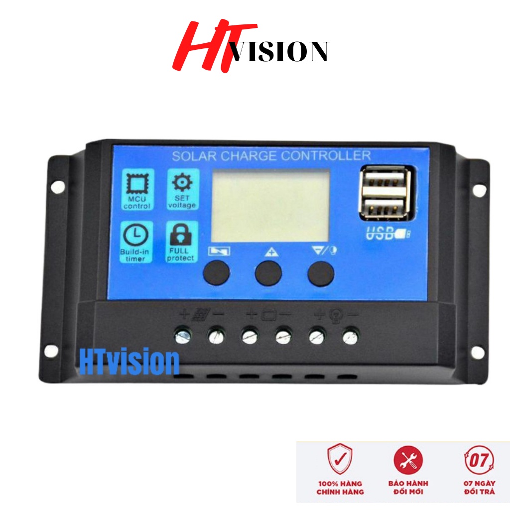 Bộ điều khiển sạc pin năng lượng mặt trời 30A 12V 24VLưu ý: hãy đọc hướng dẫn an toàn trước khi sử dụng và kết nối ắc quy trước khi kết nối với các mô-đun năng lượng mặt trời.